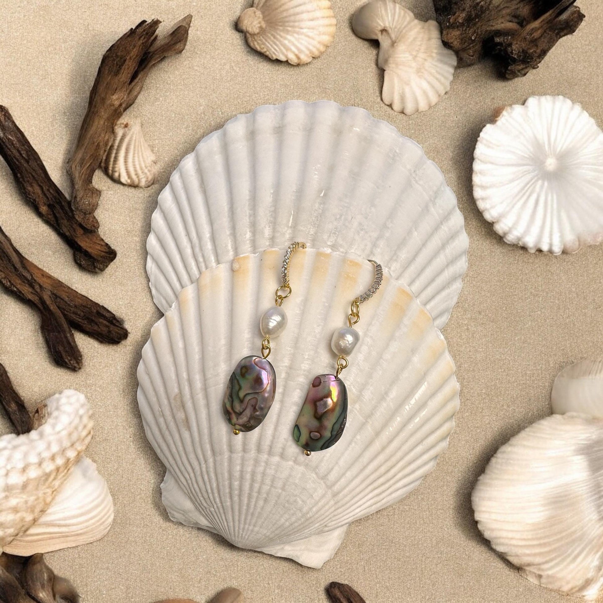 Abalone and Pearl Handmade Earrings; Beach, Ocean, Vacation, Sun, Cruise Accessories and Jewelry - Shella Bella