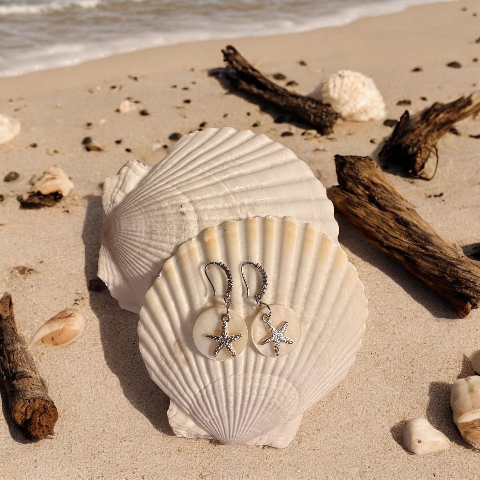 Starfish and Shell Handmade Earrings; Beach, Ocean, Vacation, Sun, Cruise Accessories and Jewelry - Shella Bella