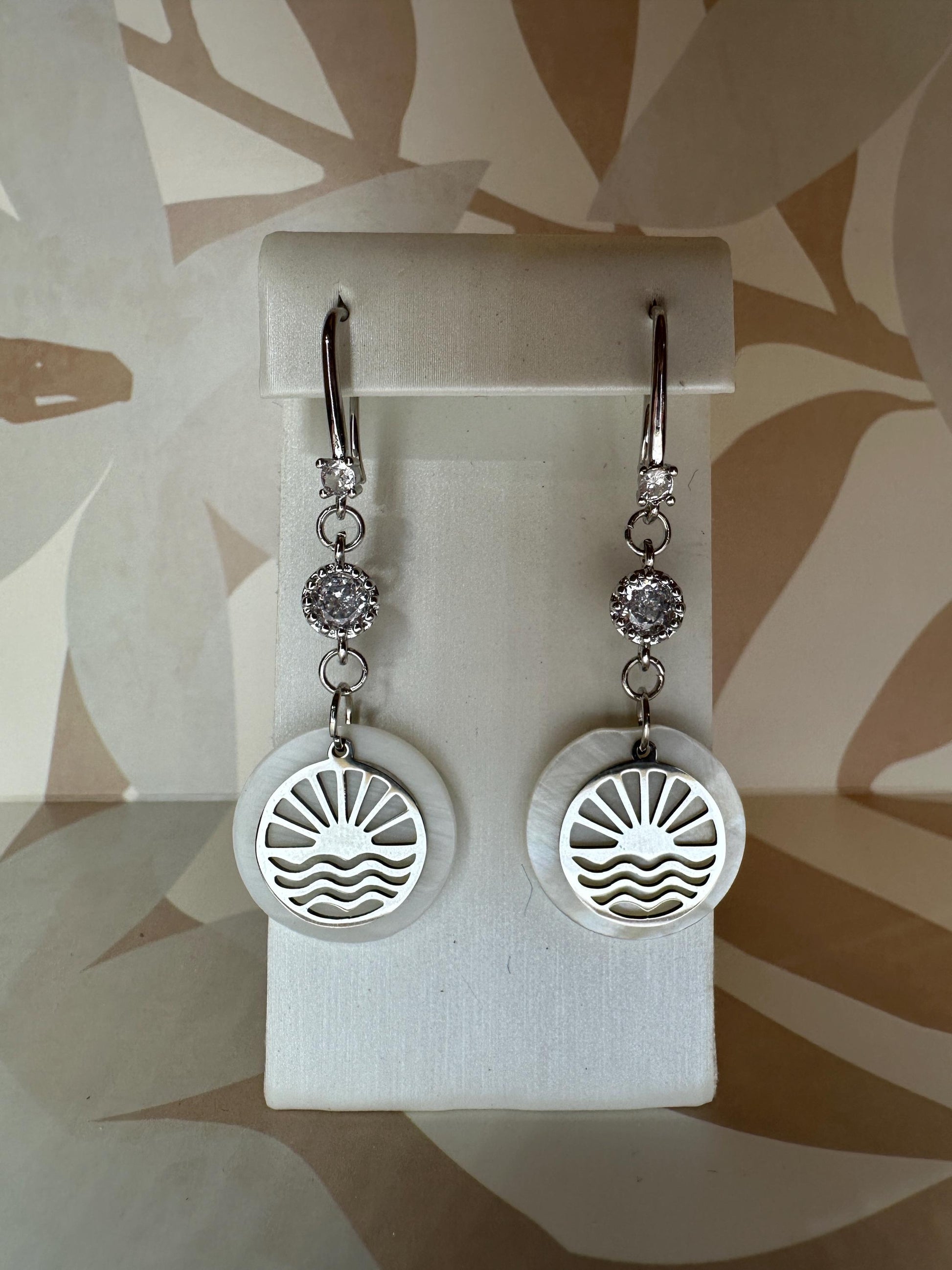 Handmade earrings with natural seashell, sunset charms and cubic zirconia accents
